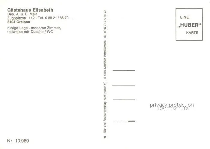 Grainau Gaestehaus Elisabeth Fremdenzimmer Landschaftspanorama Alpen Huber Karte Nr 10989 Grainau postalisch nicht gelaufen nach 1965 Erhaltung siehe scans [FriedD77] Frierer