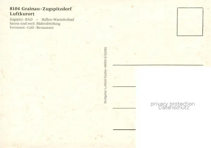 Grainau Zugspitzbad Hallenbad Freibad Luftkurort Fliegeraufnahme Grainau postalisch nicht gelaufen nach 1965 Erhaltung siehe scans [FriedD77] Frierer