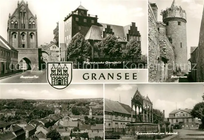 AK / Ansichtskarte Gransee Ruppiner Tor Schule Pulverturm Luisendenkmal von Schinkel Stadtpanorama Gransee