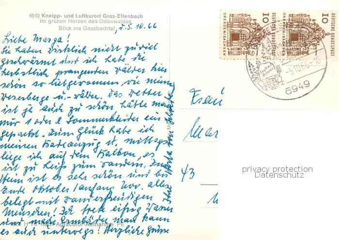 Gras-Ellenbach Blick ins Gassbachtal Gras-Ellenbach postalisch gelaufen 1966 Erhaltung siehe scans [WerneD78] WernPID7