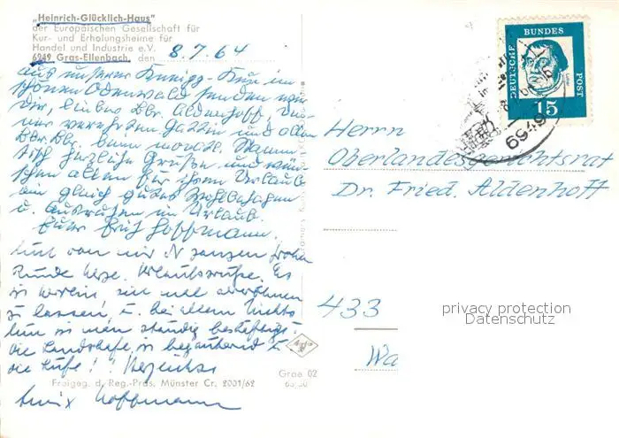 Gras Ellenbach Kategorie Alte Ansichtskarten Postkarten bx59730 Gras Ellenbach Heinrich Gluecklich Haus Fliegeraufnahme Gras Ellenbach postalisch gelaufen 1964 Erhaltung siehe scans [WerneD78]