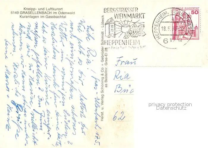 Grasellenbach Kuranlagen im Gassbachtal Kneipp Luftkurort Grasellenbach postalisch gelaufen 1980 Erhaltung siehe scans [FriedD77] Frierer