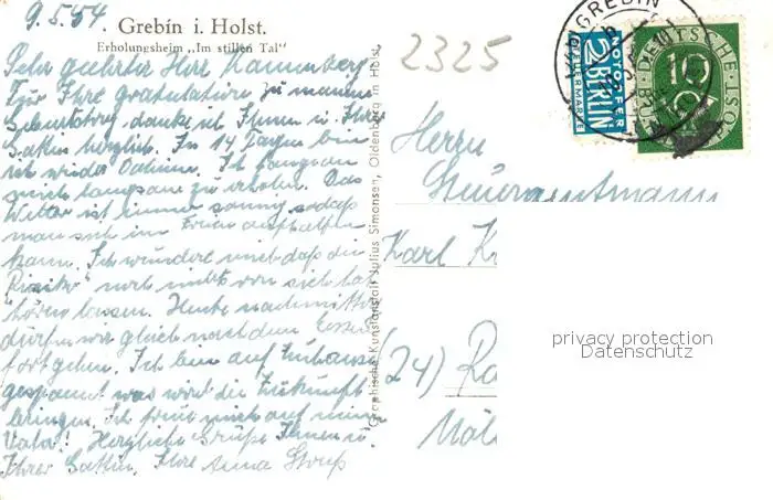 Grebin Erholungsheim Im stillen Tal Grebin postalisch gelaufen 1954 Erhaltung siehe scans [WerneD78] WernPID7