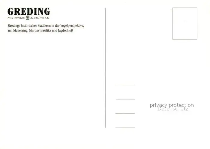 Greding Kategorie Alte Ansichtskarten Postkarten bx47521 Greding Fliegeraufnahme Naturpark Altmuehltal mit Mauerring Basilika Jagdschloss Greding postalisch nicht gelaufen nach 1965 Erhaltung siehe scans [LiesaD40]