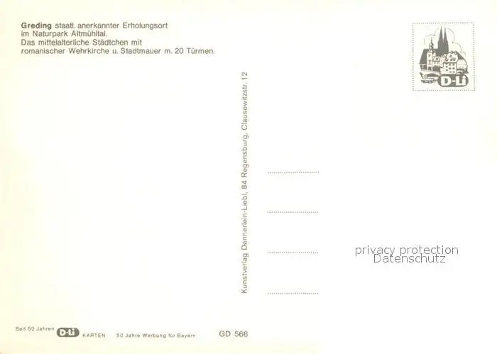 Greding Kirche Wehrtuerme Schloss Tuerme Stadtmauer Teilansicht mittelalterliche Stadt Greding postalisch nicht gelaufen nach 1965 Erhaltung siehe scans [FriedD77] Frierer