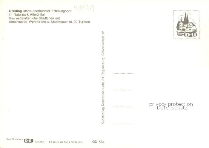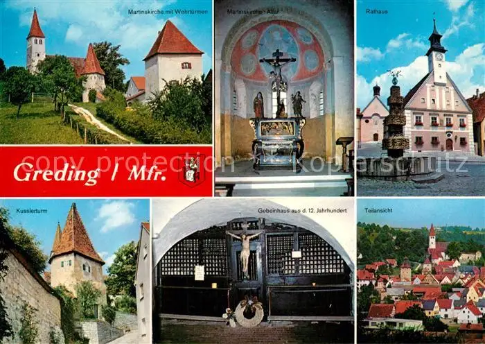 Greding Rathaus Marinskirche Kusslerturm Greding postalisch nicht gelaufen nach 1965 Erhaltung siehe scans [NatalD47] NataID47
