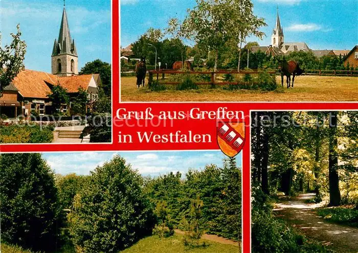 Greffen Kategorie Alte Ansichtskarten Postkarten bx49178 Greffen Kirche Pferdekoppfel Waldpartie Landschaft Greffen postalisch nicht gelaufen 1984 Erhaltung siehe scans [FriedD77]