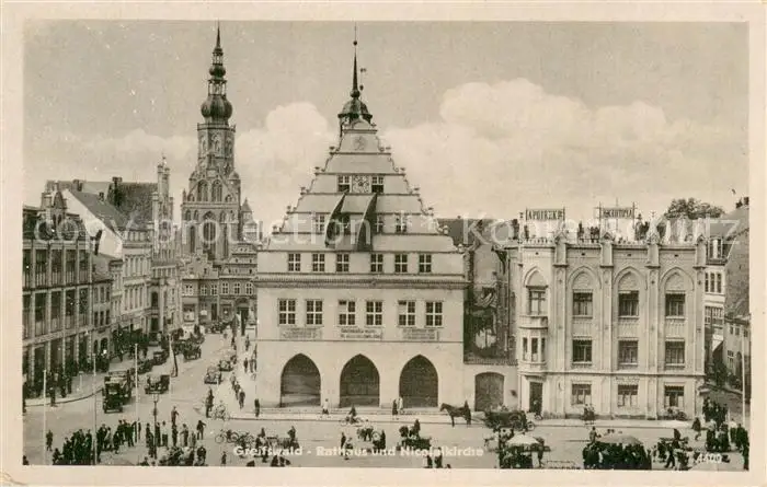 AK / Ansichtskarte Greifswald Rathaus und Nicolaikirche Greifswald