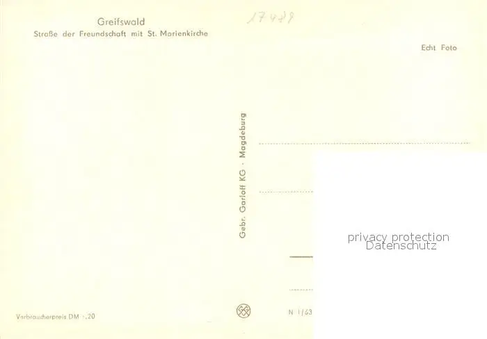 Greifswald Strasse der Freundschaft mit St Marienkirche Greifswald postalisch nicht gelaufen nach 1965 Erhaltung siehe scans [FriedD77] Frierer