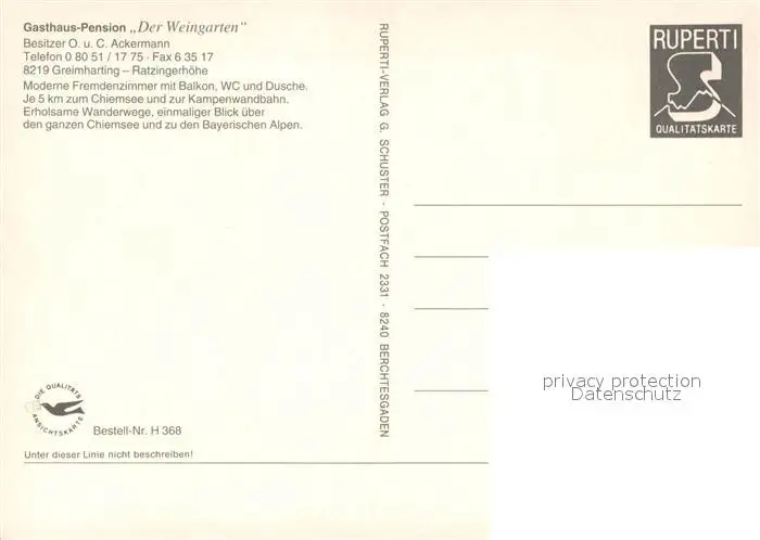 Greimharting Gasthaus Pension Der Weingarten Ratzingerhoehe Landschaftspanorama Greimharting postalisch nicht gelaufen nach 1965 Erhaltung siehe scans [FriedD77] Frierer