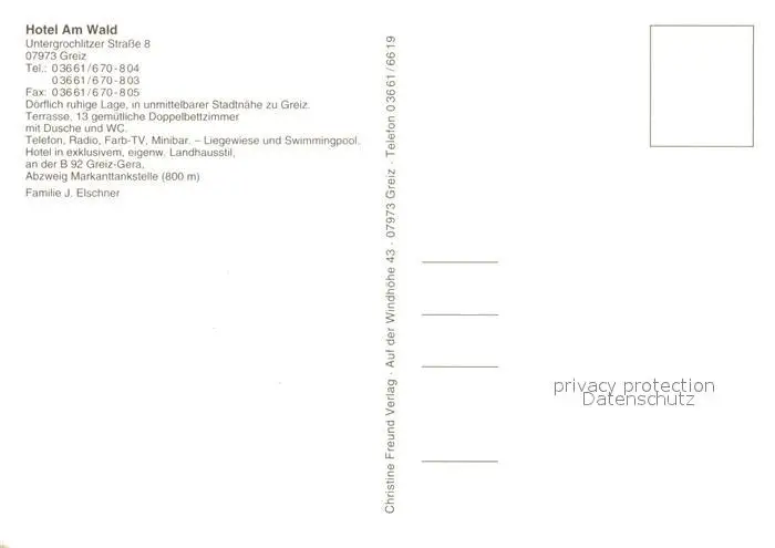 Greiz_Thueringen Hotel Am Wald Greiz Thueringen postalisch nicht gelaufen nach 1965 Erhaltung siehe scans [FriedD77] Frierer