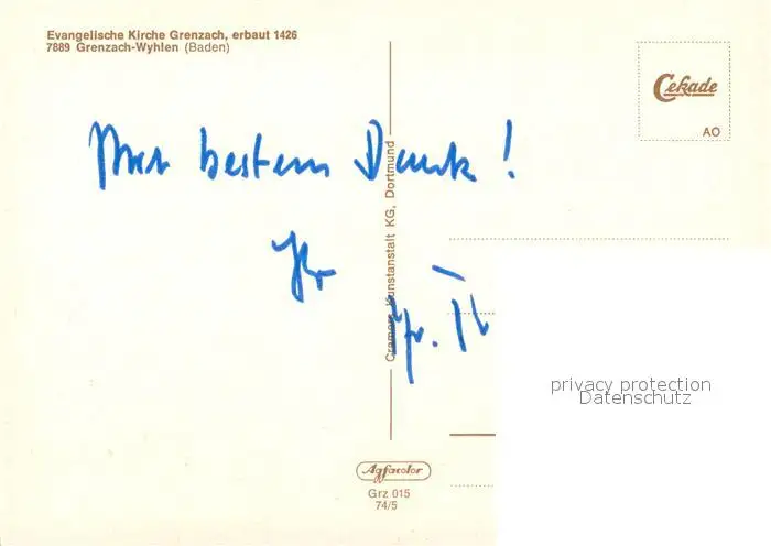Grenzach-Wyhlen Kirche Grenzach-Wyhlen postalisch nicht gelaufen nach 1965 Erhaltung siehe scans [LiesaD40] LiesID40