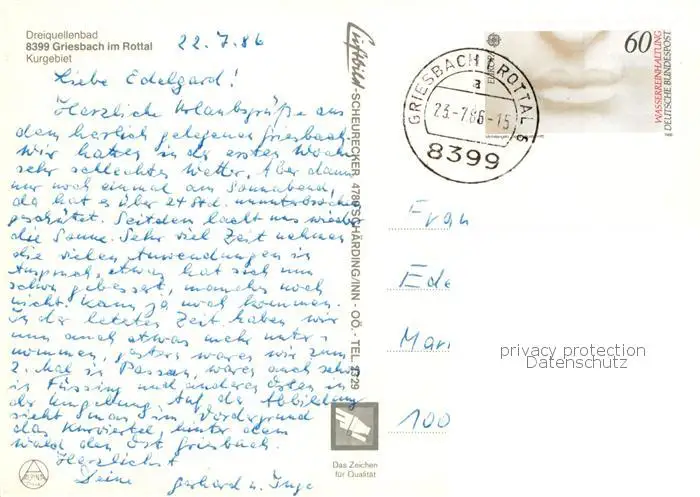 Griesbach_Rottal Kurgebiet Fliegeraufnahme Griesbach Rottal postalisch gelaufen 1986 Erhaltung siehe scans [FriedD77] Frierer