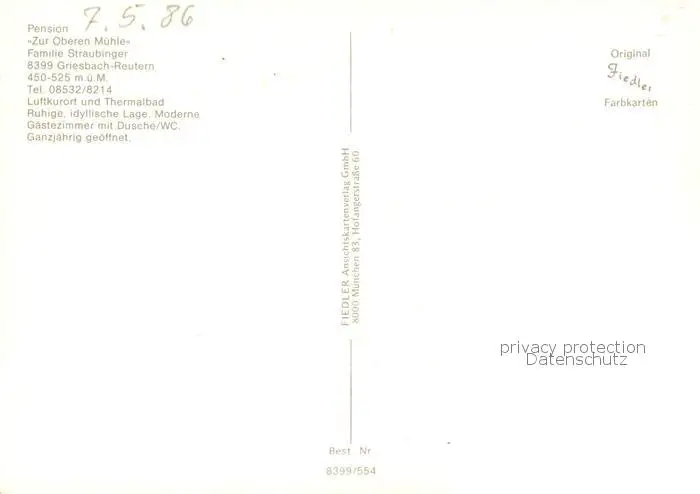 Griesbach_Rottal Pension Zur Oberen Muehle Gaststube Liegewiese Boulebahn Griesbach Rottal postalisch nicht gelaufen nach 1965 Erhaltung siehe scans [FriedD77] Frierer