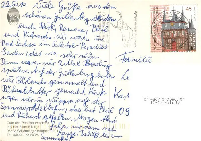 Grillenberg Cafe Pension Waldblick Grillenberg postalisch gelaufen 2010 Erhaltung siehe scans [WerneD78] WernPID7