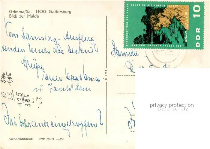 Grimma HOG Gattersburg Terrasse Blick zur Mulde Grimma postalisch gelaufen 1964 Erhaltung siehe scans [FriedD77] Frierer