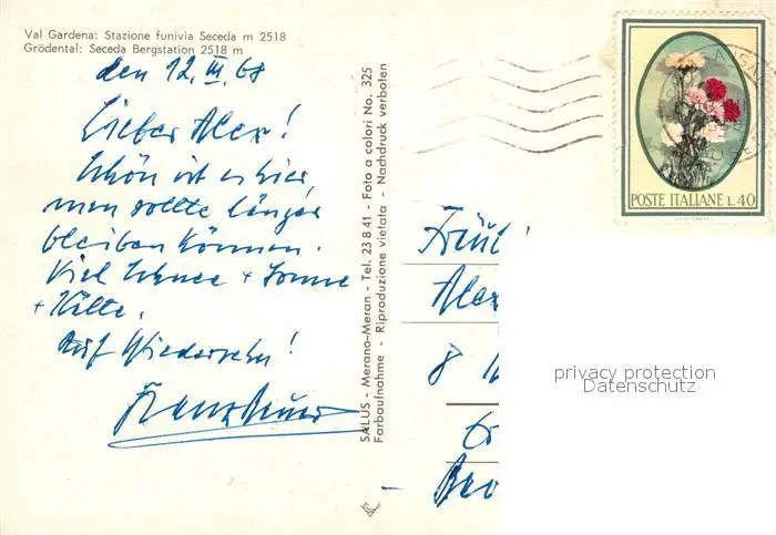Groeden Groedental Seceda Bergstation Wintersportplatz Dolomiten Groeden postalisch gelaufen 1968 Erhaltung siehe scans [FriedD77] Frierer