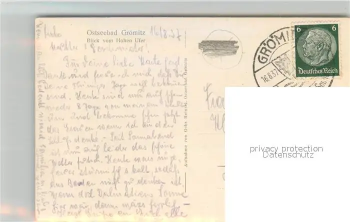 Groemitz_Ostseebad Blick vom Hohen Ufer Groemitz_Ostseebad postalisch gelaufen 1937 Erhaltung siehe scans [KathaD81] Kathoren