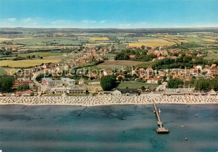AK / Ansichtskarte Groemitz_Ostseebad Fliegeraufnahme Strand Groemitz_Ostseebad