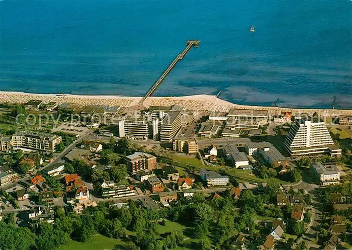 Groemitz_Ostseebad Fliegeraufnahme mit Seebruecke Groemitz_Ostseebad postalisch gelaufen 1985 Erhaltung siehe scans [WerneD78] WernPID7