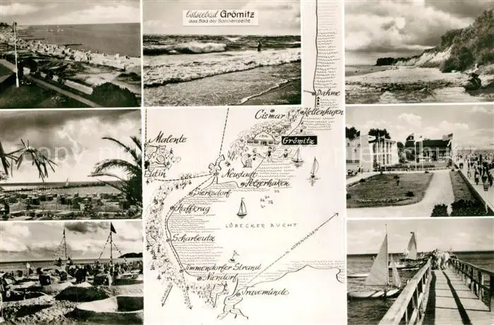 Groemitz_Ostseebad Strandpartien Hohes Ufer Promenade Seebruecke Groemitz_Ostseebad postalisch gelaufen 1962 Erhaltung siehe scans [WerneD78] WernPID7