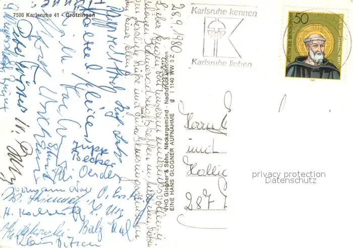 Groetzingen_Karlsruhe Kirche Schloss Rathaus Brunnen Groetzingen Karlsruhe postalisch gelaufen 1980 Erhaltung siehe scans [WerneD78] WernPID7