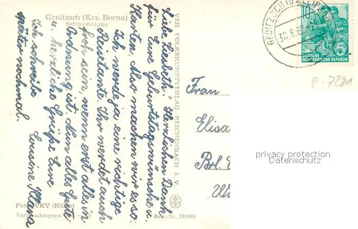 Groitzsch_Borna Schwennigke Groitzsch Borna postalisch gelaufen 1960 Erhaltung siehe scans [KathaD81] Kathoren