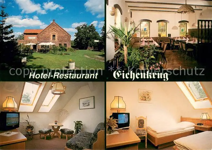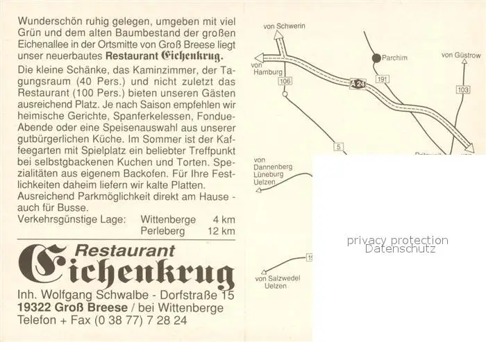 Gross_Breese_Wittenberge Hotel Restaurant Eichenkrug Gaststube Zimmer Gross_Breese_Wittenberge postalisch nicht gelaufen nach 1965 Werbekarte (keine Postkarte) Erhaltung siehe scans [WerneD78] Werbekarte (keine Postkarte) WernPID7