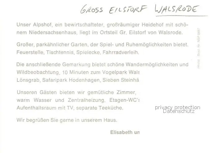 Gross_Eilstorf Urlaub auf dem Bauernhof Hof Lohmann Gross_Eilstorf postalisch nicht gelaufen nach 1965 Werbekarte (keine Postkarte) Erhaltung siehe scans [FriedD77] Werbekarte (keine Postkarte) Frierer
