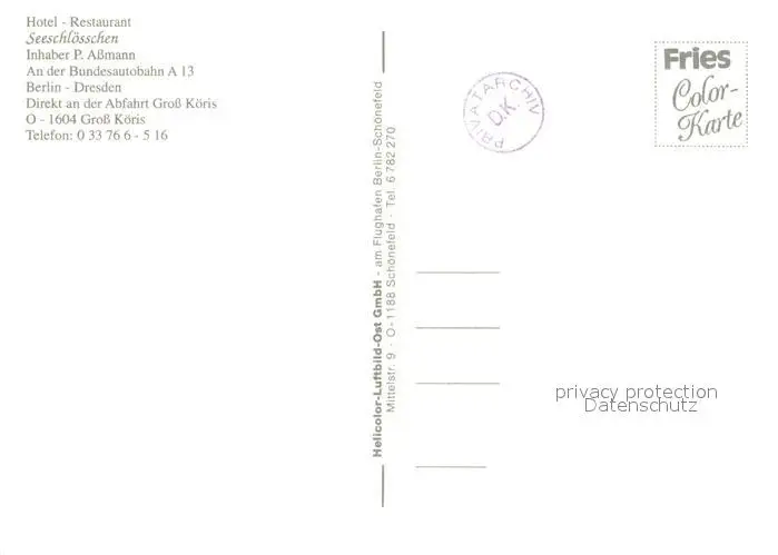 Gross_Koeris Hotel Restaurant Seeschloesschen Fliegeraufnahme Gross Koeris postalisch nicht gelaufen nach 1965 Erhaltung siehe scans [WerneD78] WernPID7