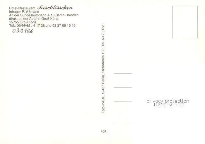 Gross_Koeris Hotel Restaurant Seeschloesschen Seebruecke Park Gaststube Gross Koeris postalisch nicht gelaufen nach 1965 Erhaltung siehe scans [WerneD78] WernPID7
