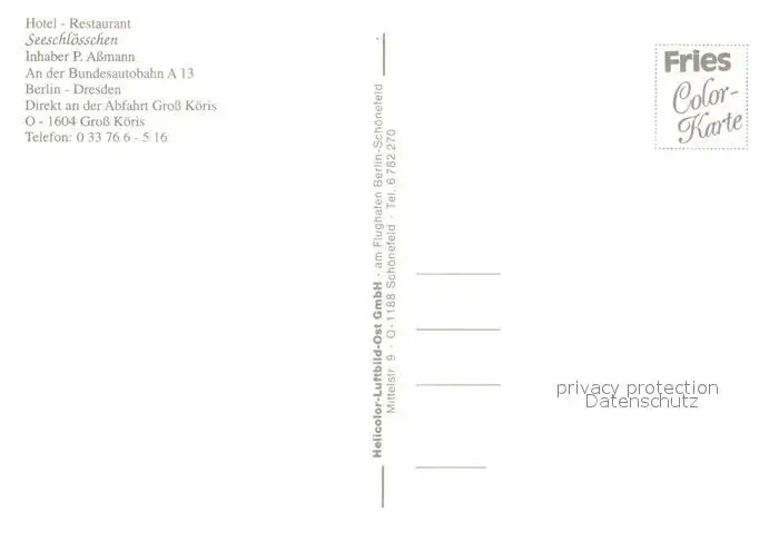 Gross_Koeris Seeschloesschen Fliegeraufnahme Gross Koeris postalisch nicht gelaufen nach 1965 Erhaltung siehe scans [WerneD78] WernPID7