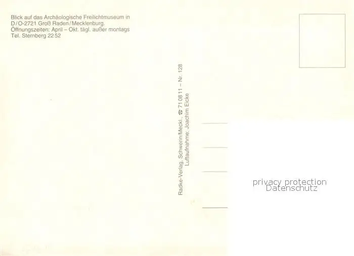 Gross_Raden Archaeologisches Freilichtmuseum Fliegeraufnahme Gross Raden postalisch nicht gelaufen nach 1965 Erhaltung siehe scans [WerneD78] WernPID7