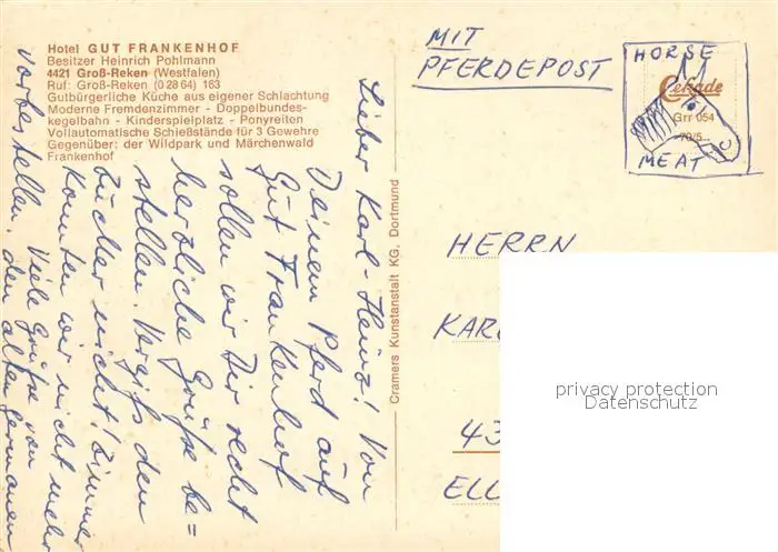 Gross_Reken Hotel Gut Frankenhof Restaurant Gross Reken postalisch nicht gelaufen 1970 Erhaltung siehe scans [FriedD77] Frierer
