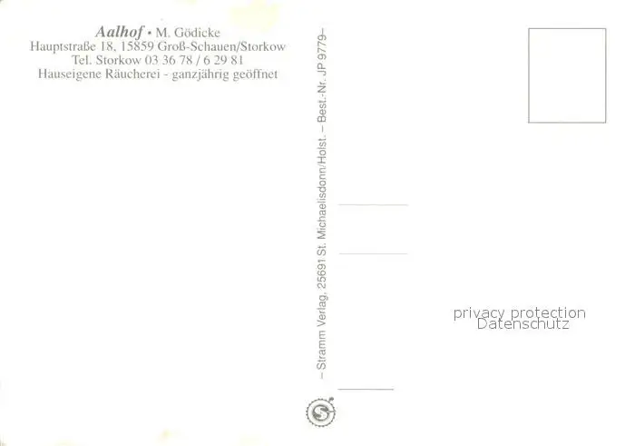 Gross_Schauen Aalhof Raeucherei Gaststaette Gross Schauen postalisch nicht gelaufen nach 1965 Erhaltung siehe scans [FriedD77] Frierer
