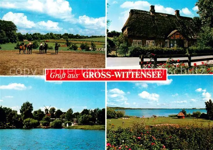 AK / Ansichtskarte Gross_Wittensee Reitstall Reitplatz Reetdachhaus Panorama Wittensee Naturpark Huettener Berge Gross Wittensee