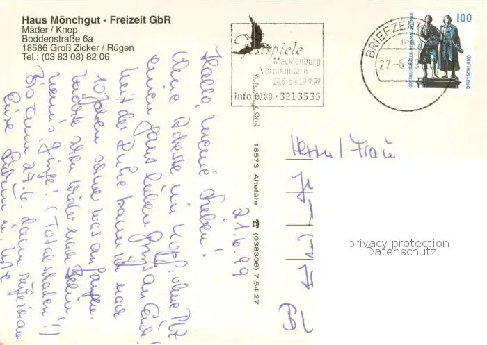 Gross_Zicker_Gager Fliegeraufnahme Haus Moenchgut Sauna Zimmer Gaststube Gross_Zicker_Gager postalisch gelaufen 1999 Erhaltung siehe scans [WerneD78] WernPID7