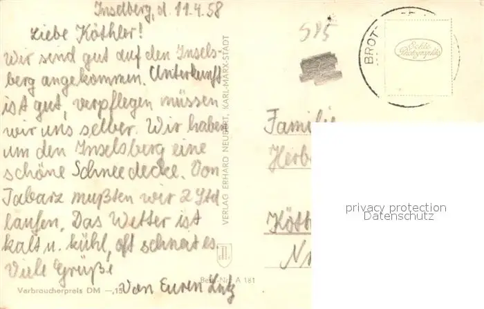 Grosser_Inselsberg Skifahrer Grosser Inselsberg postalisch gelaufen 1958 Erhaltung siehe scans [KathaD81] Kathoren