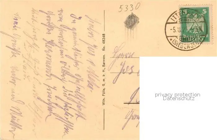 Grosser_Oelberg im Siebengebirge mit den Hoefen Grosser Oelberg postalisch gelaufen 1925 Erhaltung siehe scans [FriedD77] Frierer