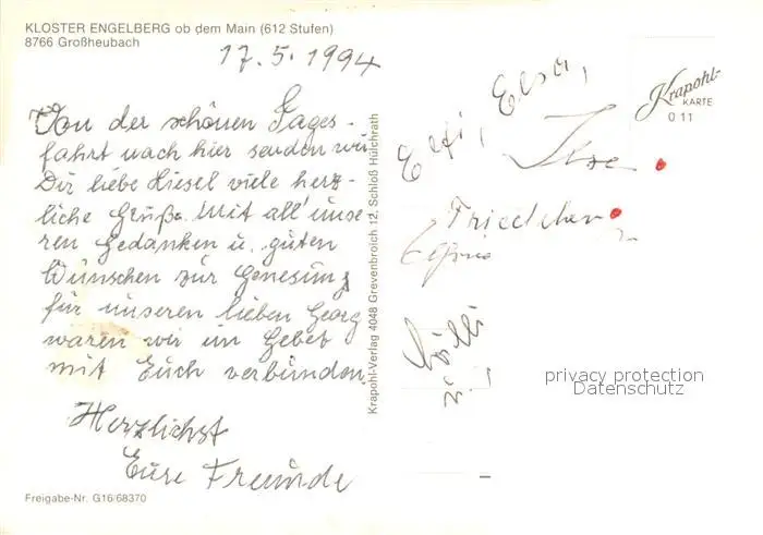 Grossheubach Kloster Engelberg Fliegeraufnahme Grossheubach postalisch nicht gelaufen 1994 Erhaltung siehe scans [WerneD78] WernPID7