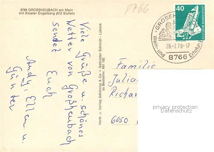 Grossheubach Kloster Engelberg Rathaus Marktplatz Miltenberg Panorama Grossheubach postalisch gelaufen 1978 Erhaltung siehe scans [KathaD81] Kathoren