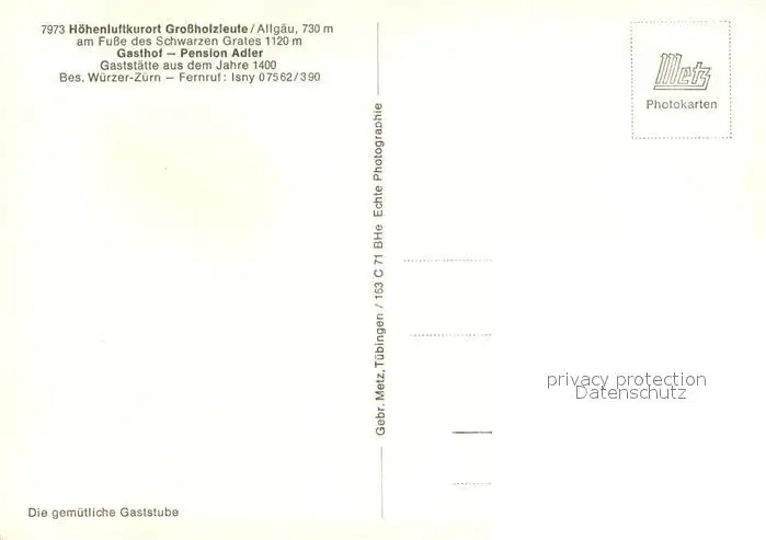 Grossholzleute Gasthof Pension Adler Historisches Gaststaette am Fusse des Schwarzen Grates Grossholzleute postalisch nicht gelaufen nach 1965 Erhaltung siehe scans [FriedD77] Frierer