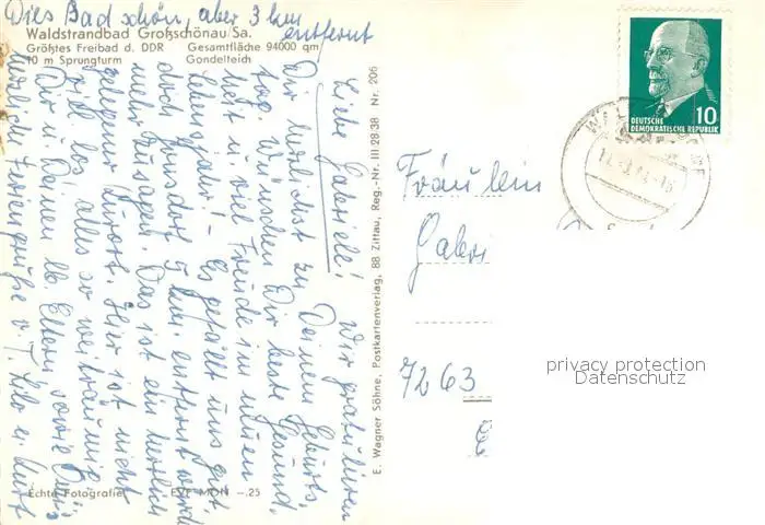 Grossschoenau_Sachsen Waldstrandbad mit Sprungturm Grossschoenau Sachsen postalisch gelaufen nach 1965 Erhaltung siehe scans [FriedD77] Frierer