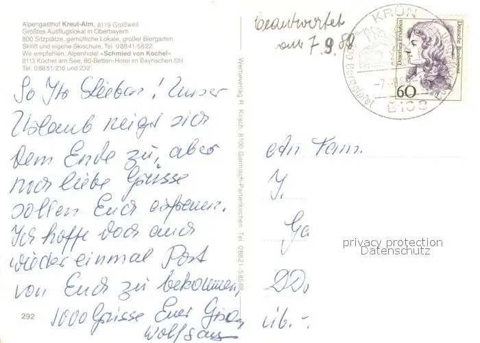 Grossweil Alpengasthof Kreut Alm Kochelsee Alpen Grossweil postalisch gelaufen 1980 Fliegeraufnahme Erhaltung siehe scans [FriedD77] Fliegeraufnahme Frierer