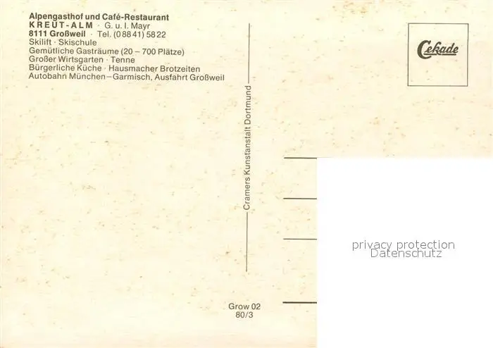 Grossweil Cafe Restaurant Alpengasthof Grossweil postalisch nicht gelaufen nach 1965 Erhaltung siehe scans [KathaD81] Kathoren