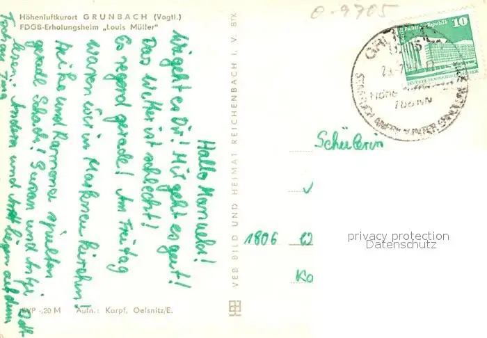 Gruenbach_Vogtland FDGB Erholungsheim Louis Mueller Gruenbach_Vogtland postalisch gelaufen nach 1965 Erhaltung siehe scans [KathaD81] Kathoren