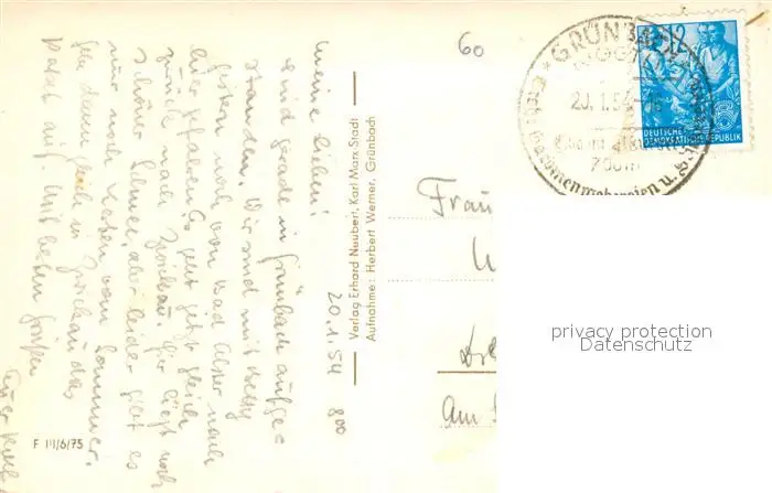 Gruenbach_Vogtland Ferienheim Druckersmuehle Gruenbach_Vogtland postalisch gelaufen 1954 Erhaltung siehe scans [PaolaD17] PaolPID1