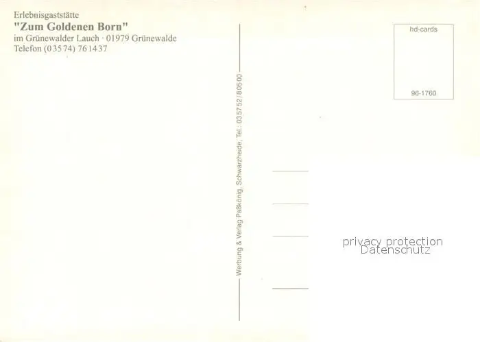 Gruenewalde_Ruhland Gaststaette Zum goldenen Born im Gruenewalder Lauch Badestrand Gruenewalde_Ruhland postalisch nicht gelaufen 1996 Erhaltung siehe scans [FriedD77] Frierer