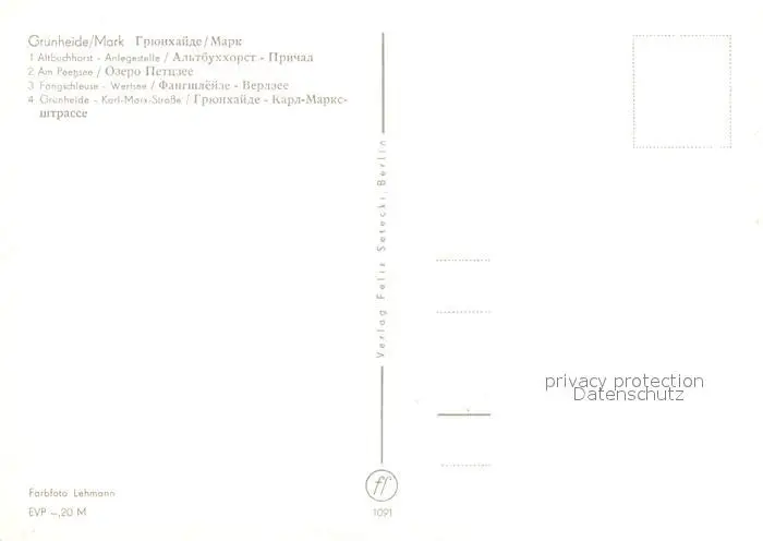 Gruenheide_Mark Anlegestelle Altbuchhorst Peetzsee Fangschleuse Werlsee Karl Marx Strasse Gruenheide Mark postalisch nicht gelaufen nach 1965 Erhaltung siehe scans [WerneD78] WernPID7