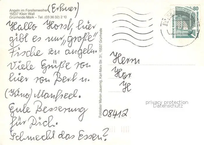 Gruenheide_Mark Forellenanalge Klein Wall Weiher Gruenheide Mark postalisch gelaufen nach 1965 Erhaltung siehe scans [LiesaD40] LiesID40